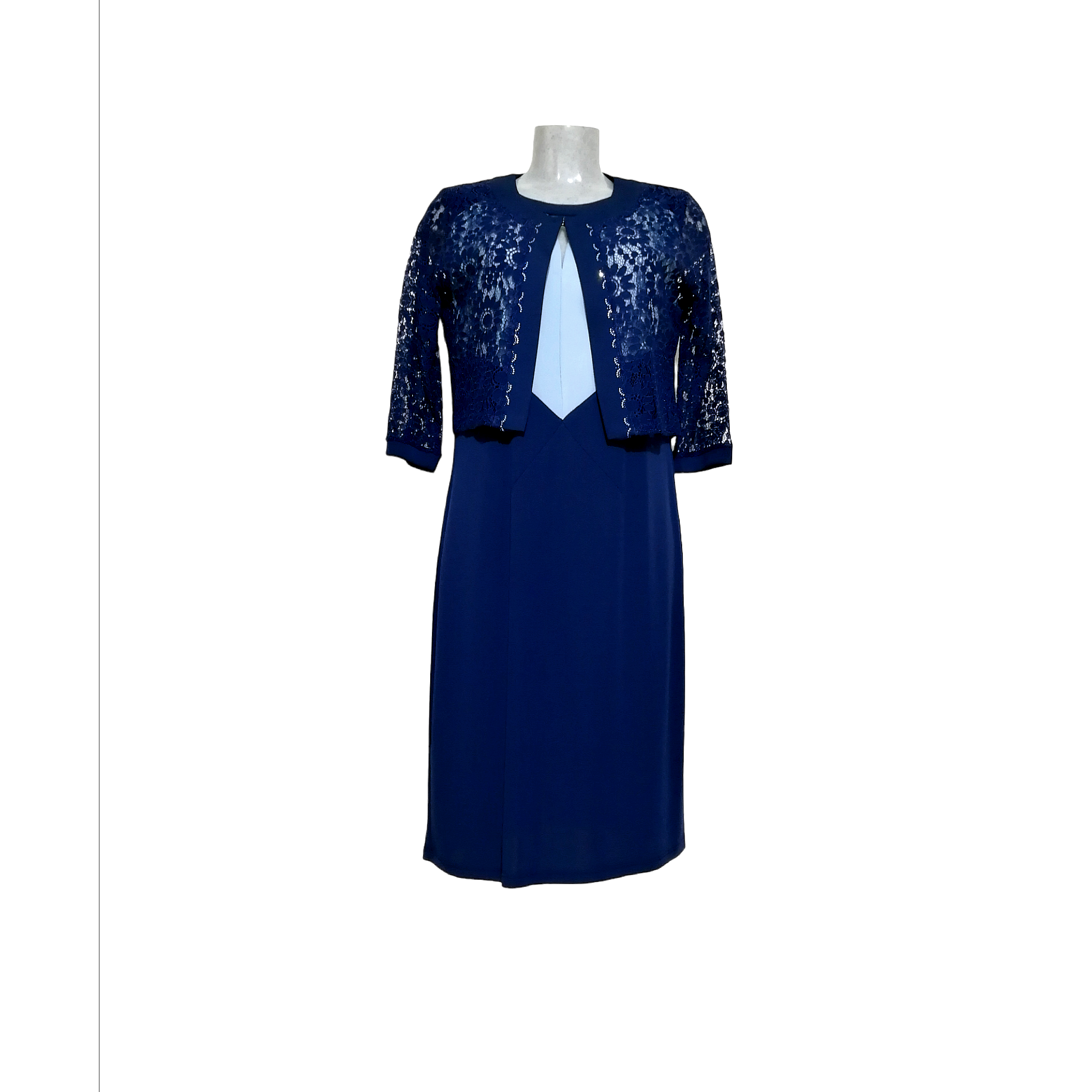 Abito Donna elegante con bolerino in pizzo, linea dritta, morbido ed elasticizzato, ideale per le tue cerimonie.