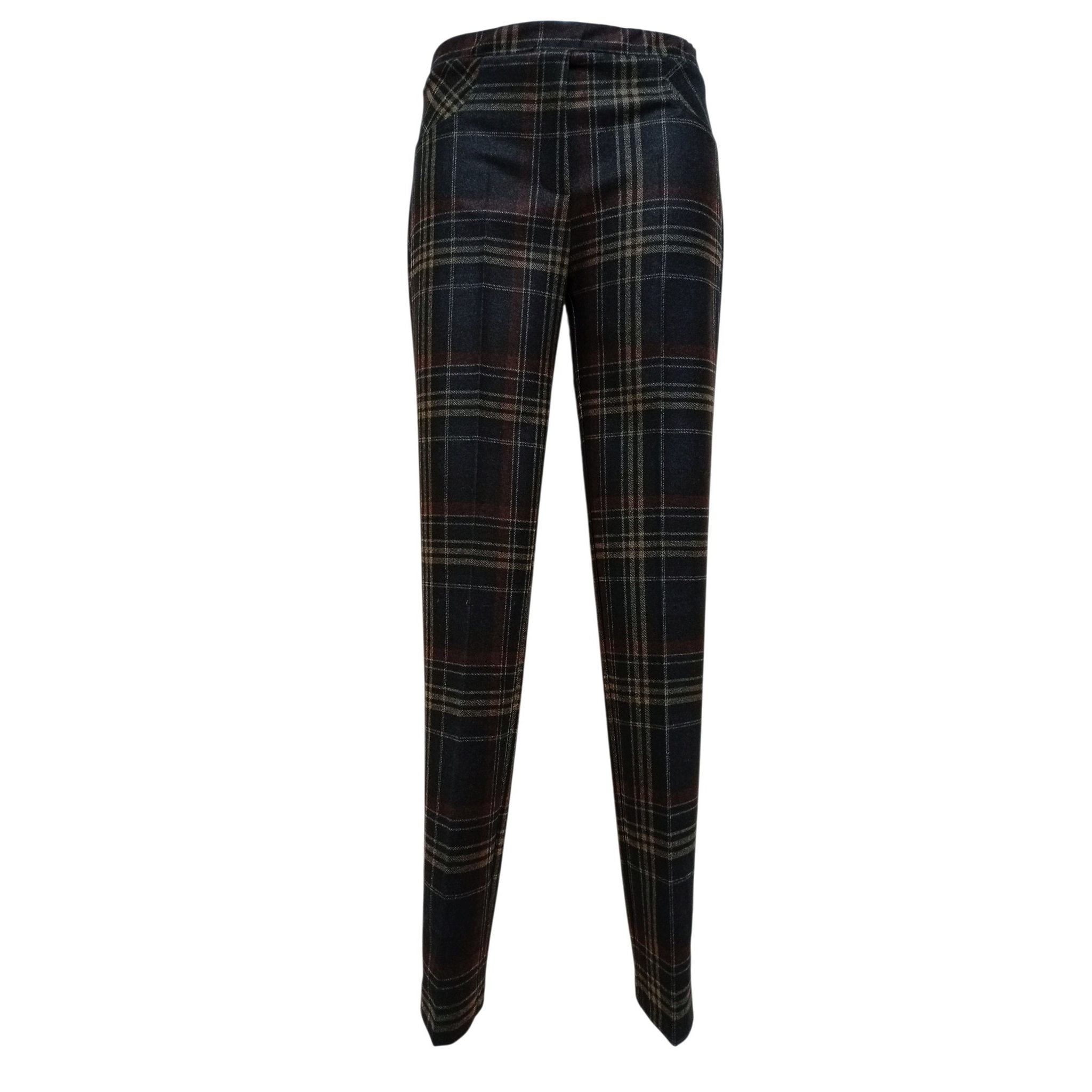 Pantalone donna in fantasia tartan, realizzato in tessuto caldo e morbido, ideale per la stagione autunno/inverno. Vita alta con elastico comodo che garantisce una vestibilità pratica e confortevole. Linea dritta , perfetta per un look casual chic. Il motivo scozzese dona un tocco classico e di tendenza, facilmente abbinabile a maglie tinta unita, dolcevita o blazer. Un capo versatile per outfit quotidiani con stile.