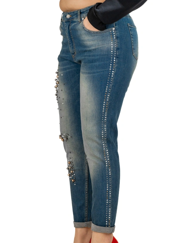 PANTALONE DONNA JEANS CON PERLE E STRASS